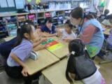 ボランティアの方々にもご協力いただき、子どもたちはつるを上手に丸めながら楽しそうに作業していました。