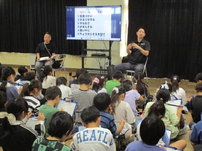 今回いらしてくださったのは、栃木県初のプロバレーボールチームである「レーヴィス栃木」創業者で、代表取締役の店網先生。言葉遣いについて、きまりを守ることについて、素直さについて、我慢することについて、思いやりについて、挑戦する大切さについて、の6つの観点から、様々な話をしてくださいました。