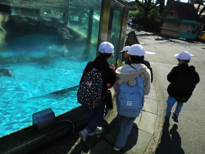 午前中は動物園エリアを班ごとにまわり、公共のマナーに気を付けながら行動しました。ホワイトタイガーやカバ、ペンギンなど、普段はなかなか見られない動物たちを間近で見ることができ、子どもたちは目を輝かせていました。