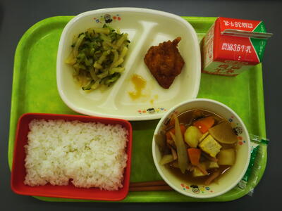 本日、給食センターの方にお越しいただき、食育の授業を行いました。