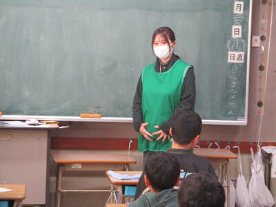 子ども家庭センターから、助産師さんと保健士さんをお呼びし、これから成長していく上で知っておいてほしいことを教えてくださいました。