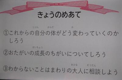 自分の・相手のプライベートゾーンのルールと、体の変化はみんなにおこるものであり、悩むことはないことを確認しました。